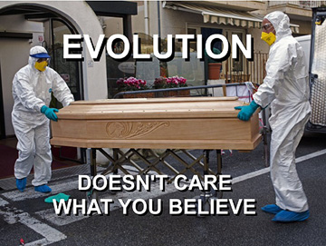 Evolution affects viruses more than people because they replicate faster. Actually, that's all they do. Viruses are basically delivery systems for their own recipes to the cells of living things. The viruses that cause Covid infect the cells of the host and hijack the replication machinery of the host's cells to produce the virus instead of the host's cells. Evolution has equipped potential hosts with the ability to provoke a response that attempts to destroy the virus. The effectiveness of this process depends on the number of virus particles in the host and the efficiency of the destructive response. This efficiency requires evolutionary time to adjust to respond to any particular virus. Because the Covid virus is new, this efficiency is naturally low in humans. This is why it needs to be enhanced by recent vaccination. Unfortunately, it decreases with time, which is why booster vaccinations are recommended.