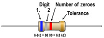 | Mnemonic | Color | Color Band | Digit | Multiplier | Resistor Tolerance | Capacitor Tolerance |